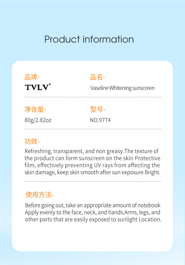 Feature highlights:This high-protection SPF 50+ sunscreen lotion offers UV protection, moisturizing, hydrating, and whitening effects suitable for all skin types. It features organic, cruelty-free ingredients like glycerin and shea butter in a cream form for face and body use. Certified with EU-UK compliance, FDA facility approval, and CPNP registration, ensuring safety, regulatory compliance, and market access. Supplier highlights:This supplier mainly exports to Iraq, the United States, and Malaysia, offers quality control services, and can provide full customization, design customization, and sample customization. Additionally, it excels with flexible customization and product certification. The positive review rate is 89.8%. | |
